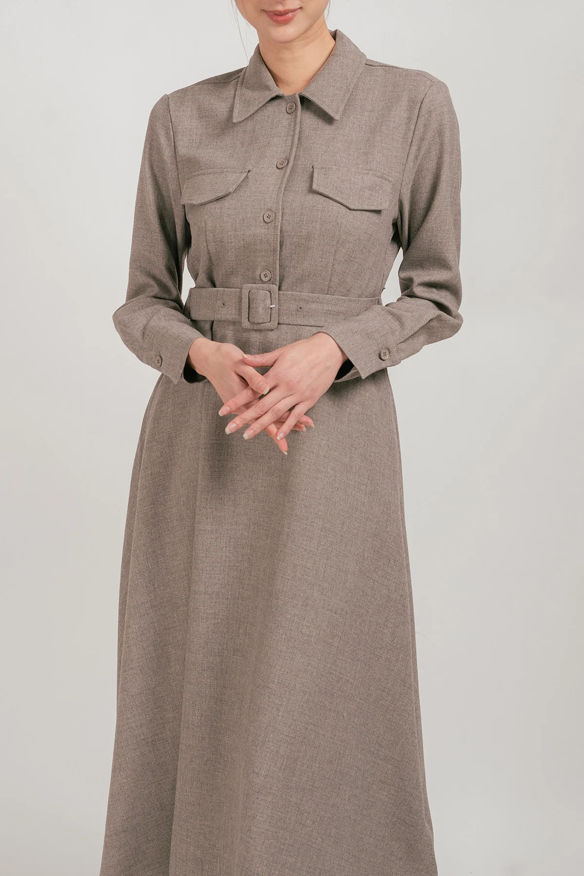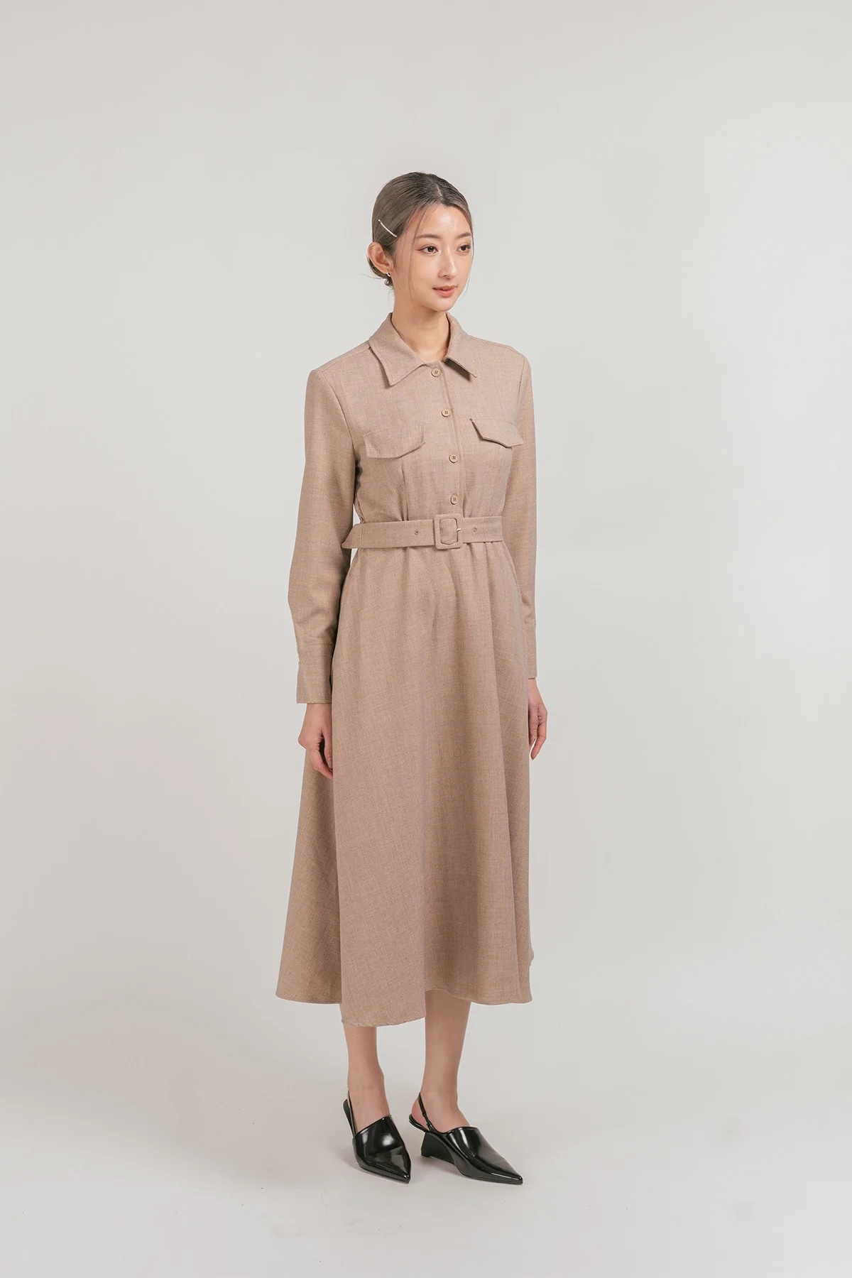 Elevate your style with our Vernitto Belted Maxi Shirt Dress. This sophisticated and exclusive dress boasts a maxi length design, shirt collared neckline, and long sleeves with buttoned cuffs. The front button fastening and included belt offer a customizable and elevated fit. Plus, two flap pockets add a touch of practicality to this luxurious piece.
